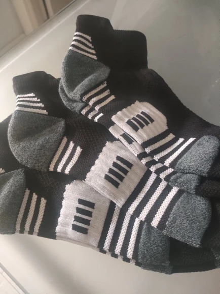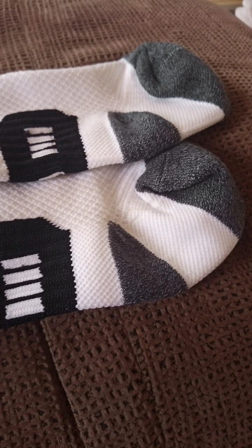 Very good socks, padded, with a suitable thickness for sports. Reinforced zone in heel and front part. I bought several times.