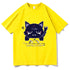 Designed for casual and playful style, this unisex T-shirt features a cute Scaramouche cat print from Genshin Impact. Made with a soft cotton-polyester blend, it offers comfort, medium stretch, and a versatile fit for everyday wear, streetwear, or themed outfits like Halloween.