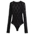 Sexy Hollow Out Long Sleeve Slim Bodysuit, Chic Clubwear