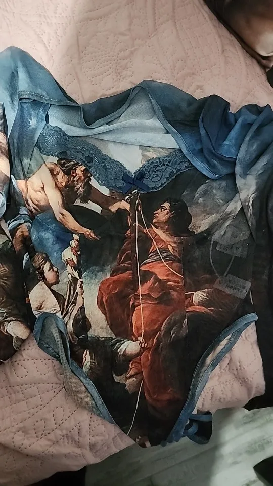 Vintage Print See-Through Gauze Bodysuit Lingerie